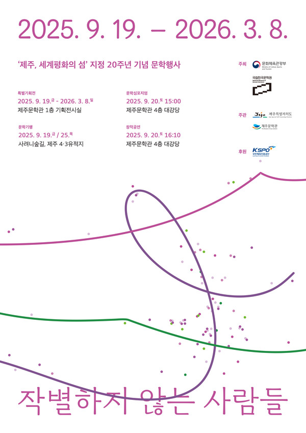 류일순 도 문화체육교육국장은 "이번 문학행사가 제주의 걸어온 길과 그 속에 담긴 사람들의 삶을 되새기며 평화의 가치를 나누는 뜻깊은 자리가 되길 바란다"고 전했다.