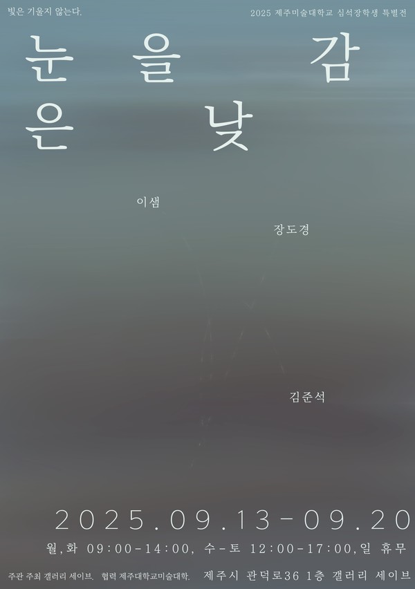갤러리 세이브는 오는 20일까지 제주대학교 미술학과 심석장학생의 특별전 '눈을 감은 낮 - 빛은 기울지 않는다'를 열고 있다.