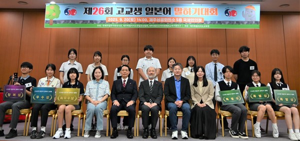 주제주일본국총영사관은 지난 20일 제주상공회의소에서 '제26회 고교생 일본어 말하기 대회'를 개최했다. 이번 대회에서는 '마음을 잇는 나의 마법'을 주제로 발표한 조하율 양(애월고등학교)이 최우수상을 수상했다.
