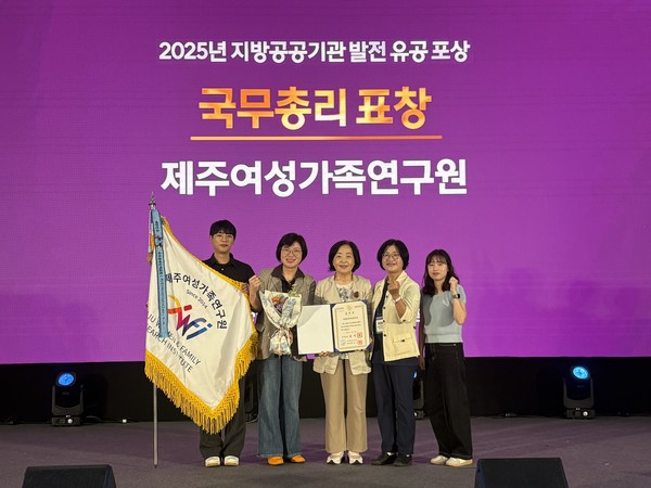 제주여성가족연구원(원장 문순덕)은 최근 행정안전부가 주최한 '2025년 지방공공기관 발전 유공 포상'에서 국무총리 표창을 수상했다.