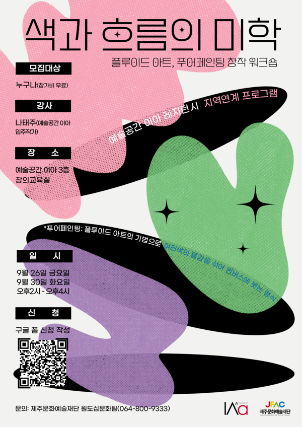 자세한 내용은 제주문화예술재단 누리집 또는 예술공간 이아 인스타그램(@artspaceiaa)에서 확인할 수 있다.