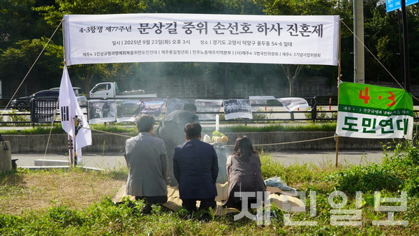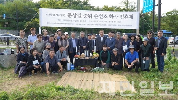 77년의 세월이 흐른 지난 23일 그의 마지막 외침이 울려 퍼졌던 경기도 고양시 덕양구 용두동 일대에서 ‘4·3항쟁 제77주년 문상길 중위·손선호 하사 진혼제’가 엄수됐다.