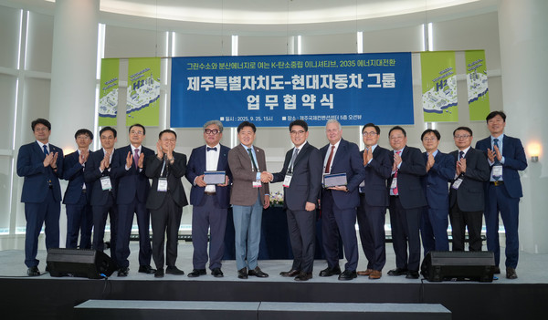 ‘2025 그린수소 글로벌 포럼’ 현장에서 이뤄진 이번 협약은 제주도의 그린수소 생태계 선도 경험과 현대차그룹의 수소 모빌리티 기술, 분산에너지 역량이 결합한 협력 모델이다. 양측은 이를 통해 글로벌 탄소중립 선도도시로의 도약을 위한 중요한 전환점을 마련했다.