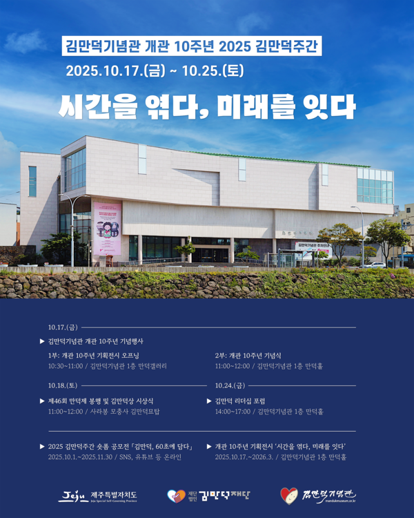 김만덕기념관은 오는 17일부터 25일까지 개관 10주년 기념 '2025 김만덕주간'을 개최한다고 13일 밝혔다.