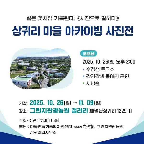 상귀리에 위치한 그린지관광농원은 오는 26일부터 다음달 9일까지 '사진으로 말하다' 사진전을 개최한다.