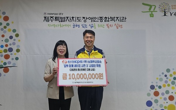 한전KPS㈜남제주사업소(소장 강주현)는 최근 도내 자립 준비 청년 장애인 지원에 사용해 달라며 제주도장애인종합복지관(관장 고경희)에 지원사업비 1000만원을 기부했다.