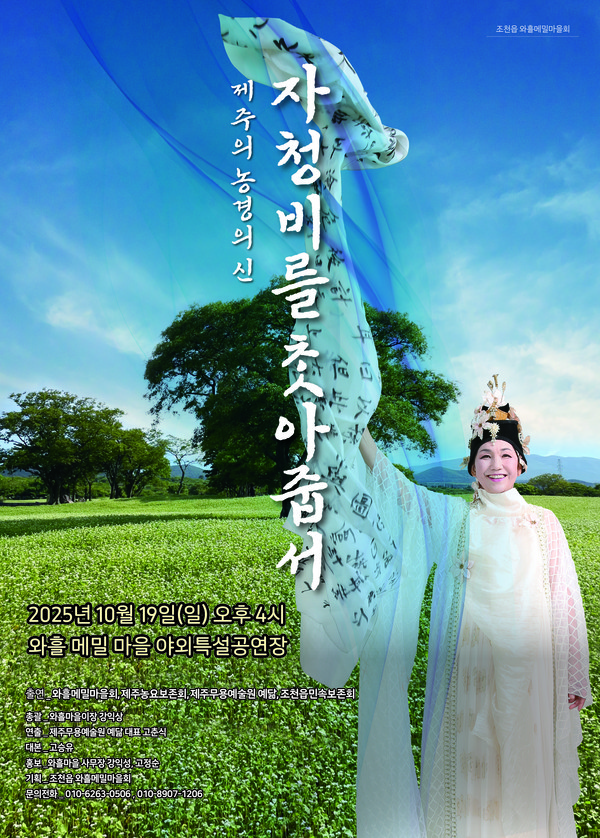 와흘메밀마을회는 오는 19일 오후 4시 와흘 메밀 마을 야외특설공연장에서 '자청비를 ᄎᆞᆽ아줍서'를 공연한다.