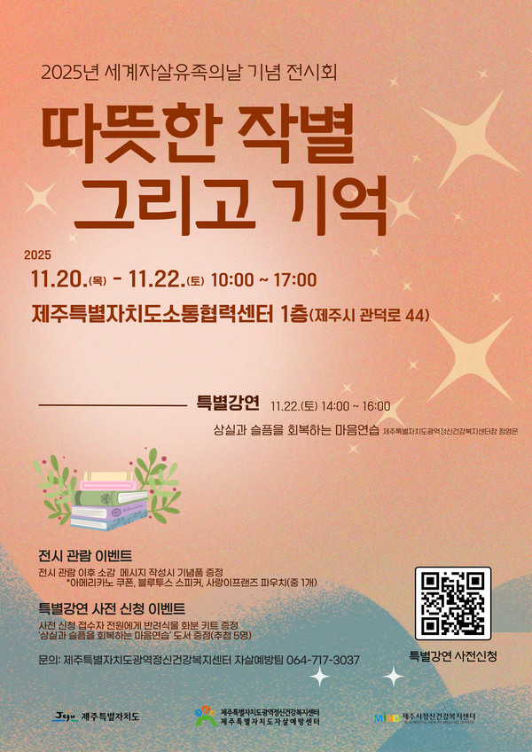 조상범 제주도 안전건강실장은 "이번 전시회를 통해 우리 사회에서 상대적으로 소외된 자살 유족에 대한 관심이 높아지고, 유족과 지역사회가 함께 상실의 아픔을 치유하며 치유와 회복의 의미를 나누는 계기가 되기를 바란다"고 전했다. 김영호 기자