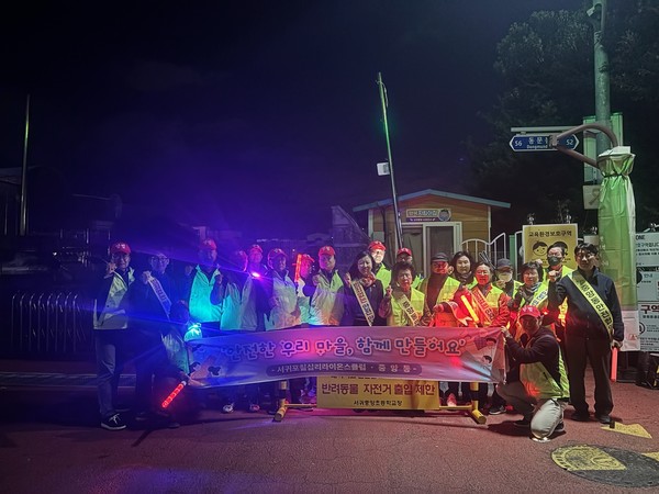 중앙동안전협의체(위원장 박민종)와 서귀포칠십리라이온스클럽(회장 강창훈)은 지난19일 서귀중앙초등학교 일원에서 야간 안전점검 및 어린이 유괴예방 안전캠페인을 실시했다.