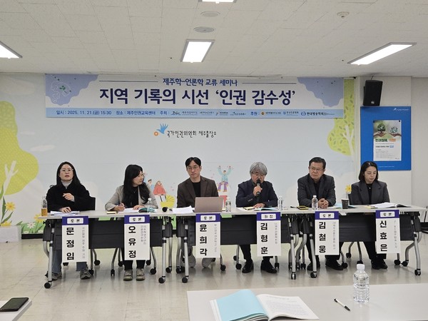 제주특별자치도 제주학연구센터(센터장 김완병)는 ㈔제주언론학회(회장 김형훈), ㈔언론인권센터(대표 심영섭)과 공동으로 21일 제주인권교육센터에서 '지역 기록의 시선-인권 감수성' 주제 제주학-언론학 교류 세미나를 개최했다.