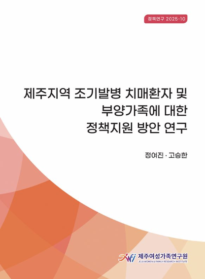 제주여성가족연구원은 제주지역 조기발병 치매환자 및 부양가족 지원방안을 담은 연구보고서를 발간했다고 15일 밝혔다.