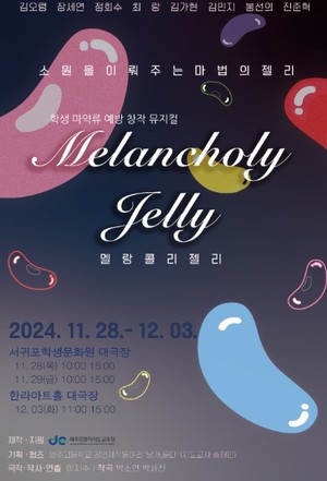 제주지역 학생들이 극본을 쓰고 출연하는 마약예방 뮤지컬이 무대에 오른다.제주도교육청은 오는 28일·29일과 12월 3일 서귀포학생문화원 대극장과 제주한라대학교 한라아트홀에서 마약류 예방 학생 창작뮤지컬 '멜랑꼴리 젤리(Melancholy Jelly)'를 선보인다.이번 뮤지컬은 영주고등학교 공연제작동아리 '날개, 돋다' 학생들이 직접 작성한 극본을 바탕으로 학생들의 에피소드를 그려내며 마약류에 대한 위험성을 알린다.공연 일정은 서귀포학생문화원에서 28~29일 오전 10시와 오후 3시, 한라아트홀에서 다음달 3일 오전 11시와 오후 3