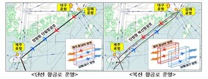 12월부터 제주와 부산을 잇는 하늘길이 두 갈래로 넓어진다.국토교통부는 12월 1일부터 제주-부산간 남해 항공로(A586) 약 300㎞를 복선화한다고 30일 밝혔다.복선화를 통해 제주 방향과 부산 방향으로 각각 분리 운영하게 되면서 반대 방향 항공기의 상승·강하 중 발생할 수 있는 항공기간 근접 가능성을 차단해 항행안전성을 제고할 수 있을 것으로 보인다.국토부는 A320기체 기준 연간 연료비 88억원 상당(8.8t), 이산화탄소 2만8000t 배출 감소, 지상 항행시설 설치비 약 120억원, 연간 운영비 약 50억원 등이 절감될 것