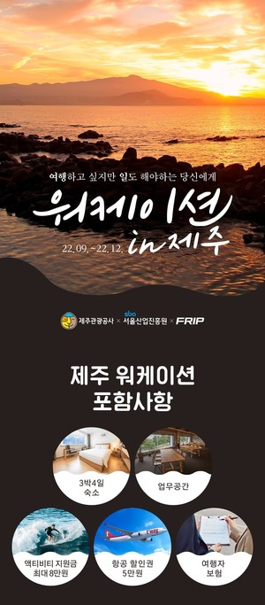 제주관광공사는 오는 13일부터 12월까지 서울 소재 중소기업·스타트업 재직자를 대상으로 '2022 제주 워케이션 프로그램'을 운영한다고 7일 밝혔다.워케이션 프로그램은 휴양지에서 원격근무와 지역 체험을 동시에 진행할 수 있는 업무 방식이다. 코로나19 이후 업무 방식이 다양회되고 있는 가운데 제주도가 워케이션 장소로 주목받고 있다.이에 따라 제주관광공사는 지난 2일부터 오는 12월말까지 2022 제주 워케이션 프로그램 참여자를 상시 모집하고 있다.프로그램 신청은 서울산업진흥원 홈페이지(https://url.kr/7qi4e1)에서 기