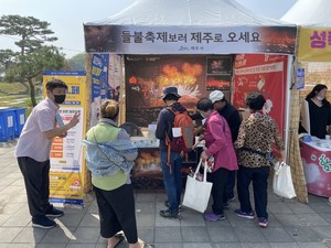 제주시와 제주도관광협회(회장 부동석)는 지난달 29일부터 이달 3일까지 5일간 김제시 벽골제 일원에서 열리는 '제24회 김제지평선축제'에 참가해 제주관광홍보관을 운영한다고 밝혔다. 올해로 24회째를 맞는 김제지평선축제는 호남권 지역 전통 농경역사축제로 지난 2019년 제주시와 김제시가 지역축제의 관광상품화를 위해 지속적으로 축제홍보를 진행하고 있다.제주관광홍보관에서는 제주의 옛 목축문화를 현대적 감각에 맞게 재현하고, 제주들불축제를 메인으로 제주의 계절별·지역별 축제를 홍보한다. 또한 봄·가을, 여름테마로 운영하는 제주도심 야간관광