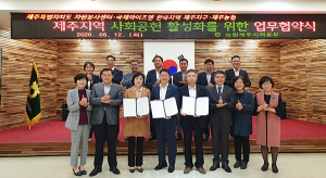 소외계층 지원 공동협력…홍경희 총재 나눔 홍보대사 위촉제주농협지역본부(본부장 변대근), 국제와이즈멘 한국지역 제주지구(총재 홍경희), 제주도자원봉사센터(센터장 고태언)는 12일 제주농협지역본부 대회의실에서 지역사회 공헌활동 및 상호협력을 위한 업무협약을 체결했다.3개 기관은 이번 협약에 따라 제주지역 사회적·경제적 소외계층 지원을 위한 기부금 모금활동과 자원봉사 공동참여, 나눔문화 확산을 위한 상호교류 등을 추진하기로 했다.이날 나눔 홍보대사로 위촉된 홍경희 제주와이즈멘 총재는 "도자원봉사센터와 제주농협이 추진하는 다