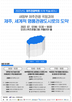 제주관광학회(회장 송상섭)는 오는 12일 오션스위츠호텔에서 '새정부 제주관광 국정과제: 제주, 세계적 명품관광도시로의 도약'을 주제로 학술세미나를 개최한다고 11일 밝혔다.이번 행사는 윤석열 정부 110대 국정과제 발표와 민선8기 제주도정 출범에 발맞춰 코로나19로 변화한 관광 환경을 분석하고, 제주가 명품관광도시로 도약하기 위한 관광 정책 및 지속가능한 관광 모델 실현 등 내용에 대한 발표가 진행된다.먼저 고동완 경기대학교 교수가 '제주형 지속가능한 관광 프레임워크 구축과 활성화 방안'을 주제로 발표한다. 이어 김근종 건양대학교