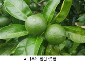 제주 풋귤을 꽃이 핀 뒤 120일 후인 9월 초 수확할 때 해거리 피해 없이 생산량을 늘릴 수 있다는 연구 결과가 나왔다.16일 농촌진흥청의 ‘풋귤의 알맞은 수확 시기 연구’자료에 따르면 수확 시기에 따라 수량이나 크기, 특히 해거리 피해가 나타나는 감귤류 특성을 감안할 때 풋귤은 가급적 9월에 수확해 출하하는 것이 생산성이나 수익성 측면에서 유리한 것으로 나타났다. 농진청은 시설이 아닌 일반 감귤원 재배 감귤의 꽃 피는 시기를 기준으로 연구를 진행했다.‘풋귤’은 덜 익은 상태의 감귤을 지칭한다. 제주도는 감귤 생산 및 유통에 관한