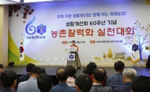 생활개선도연합회 주관 20일 제주국제컨벤션센터생활개선회 60주년 기념 및 농촌활력화 실천대회가 20일 제주국제컨벤션선터에서 열렸다.이날 행사에는 생활개선제주특별자치도연합회(회장 문현순) 회원 1000여 명이 참석해 '함께 이룬 생활개선회! 함께 여는 미래농업'이란 주제 아래 여성농업인 자긍심 고취와 권익 증진을 위한 생각을 공유했다.또 적극적인 활동과 참여로 생활개선회 발전에 기여한 우수 회원에 대한 표창장 수여식도 열렸다.이밖에도 지속 가능한 제주 농업 100년을 위한 △깨끗한 농촌마을 가꾸기 △고품질감귤 생산으로