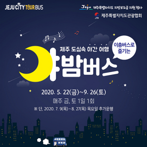 제주 도심권의 아름다운 야경을 여유롭게 즐길 수 있는 시티투어버스가 운행된다.제주도와 제주도관광협회(회장 부동석)는 제주시티투어 야간테마코스 '제주 도심 속 야간여행 야(夜)밤 버스'를 지난해 시범운행에 이어 올해 본격적으로 운행한다고 16일 밝혔다.야밤 버스는 오는 19일부터 10월 3일까지 매주 금·토요일마다 하루 1회 운행된다. 오후 6시30분부터 9시20분까지 약 2시간 50분간 돌아보는 코스로 구성했다. 7월 2일부터 10월 1일까지는 여름철 성수기를 대비해 목요일도 운행할 계획이다.운행코스는 제주국제공항을