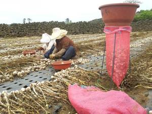 2018년 마늘 계약재배 수매단가 평년보다 한달 늦어져도 결정못해농협 원예부 전국생산량 증가 이유 ㎏당 2300원 권장 올해 900원 낮아제주농가 인건비만 1인당 9만6000원 달해 비용증가 3000원 이상 돼야2018년산 제주마늘 계약재배 수매단가 결정에 진통을 겪고 있다. 더구나 농협중앙회가 권장한 계약단가가 제주현실을 반영하지 못한채 너무 낮게 책정돼 농가들이 어려움을 토로하고 있다.제주마늘 농가와 농협중앙회 제주지역본부, 대정농협에 따르면 2018년산 마늘 계약재배 수매단가가 오는 21일 또는 22일께 결정될 것으로 보인다.