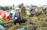 봄날씨 속에 한림읍 어촌계 소속 해녀들이 공동으로 톳작업을 하며 수확의 기쁨과 함께 주민들간 우의를 다지고 있다.