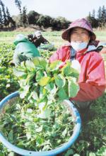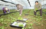 10일 성읍리 한 포장에서는 농민들이 타지역에서 겨울초라 불리며 각광받는 유채나물을 수확하느라 구슬땀을 흘리고 있다.