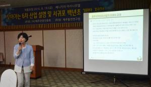 ㈔제주관광진흥회 19일 '2016년 여름포럼' 개최안순화 제발연 팀장 "융·복합으로 부가가치 창출"1·2·3차 산업을 융·복합한 6차 산업과 소비자 요구를 만족시킬 수 있는 브랜드가 필요하다는 주장이 제기됐다.㈔제주관광진흥회는 19일 베니키아호텔제주마리나에서 '찾아가는 6차 산업 설명 및 서귀포 백년초 개발 전망'을 주제로 '2016년 여름포럼'을 개최했다.이날 포럼에서 6차 산업에 대한 설명에 나선 안순화 제주발전연구원 제주농업농촌 6차 산업화지원센터 팀장은 "제주지역 농촌은 FTA