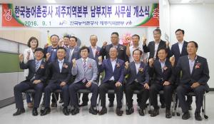 한국농어촌공사 제주지역본부 남부지부가 1일 문을 열고 서귀포지역 농·어민들의 소득 증대를 위한 사업에 돌입했다.한농공 제주본부는 이날 서귀포시 서호동 공무원연금관리공단 1층 남부지부 사무실에서 도내 농업인 단체 및 직원 등 60여명이 참여한 가운데 남부지부 개소식을 개최했다.한농공 제주본부 남부지부는 농촌용수개발사업, 농업용수통합광역화사업, 농지은행사업 등 서귀포지역 대상의 사업이 증가함에 따라 지역 농정에 적극적으로 대응하기 위해 신설됐다.전광희 남부지부장은 "농어민들의 의견을 적극 반영해 소득증대는 물론 지역사회 발전에 공헌할