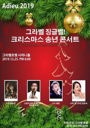 개그우먼 정은숙, 가수 희승연·래준, 색소폰연주자 신광식 초청 그라벨호텔 제주가 오는 24일과 25일 '그라벨·징글벨! 2019 크리스마스&송년콘서트'를 개최한다.이번 콘서트는 24~25일 오후 6시 그라벨호텔 샤려니홀에서 개그우먼 정은숙, 가구 희승연, 래준, KBS수석 색소폰연주자 신광식이 히트곡과 캐롤 무대를 꾸민다.특히 7080 음악과 색소폰 연주의 화합으로 가족과 함께하는 따뜻한 콘서트를 보여줄 예정이다.24일은 디너와 함께 무료로 진행하며 25일은 VIP석 6만원에 콘서트를 감상할 수 있다.그