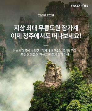 이스타항공이 동계 시즌 청주-장가계(장자제) 노선 일정을 오픈한다.이스타항공은 오는 26일부터 내년 3월 28일까지 청주-장가계 노선을 주2회(목, 일) 운항한다고 12일 밝혔다.운항 일정은 출국편(ZE751)이 오전 10시 청주공항 출발, 오후 12시 30분 장가계 공항에 도착하며, 귀국편(ZE752)은 오후 1시 30분 현지 출발, 오후 5시 30분 청주공항에 도착한다.노선 일정은 11일부터 오픈해 이스타항공 홈페이지(www.eastarjet.com)와 모바일을 통해 판매한다.이와 함께 현재 주 21회 운항 중인 청주-제주 노선