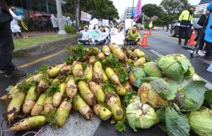 제주지역 농민들이 냉해 피해 농작물에 대한 산지폐기 등 대책 마련을 촉구했다.전국농민회총연맹 제주도연맹과 월동무 생산자연합회 등 도내 농민단체는 8일 제주도청 앞에서 '냉해피해 대책 촉구 제주농민 결의대회'를 열고 평당 2100원의 냉해 월동무 산지폐기비용 보장 등 현실적인 피해보상 대책을 촉구했다.이들 농민단체들은 "지난해 때 아닌 겨울장마에 이어 지난 1월 대폭설과 한파로 하우스 파손은 물론 월동 농작물 냉해 등 2차, 3차 피해가 잇따르고 있다"며 "하지만 제주도정은 재해보상법에 따라 월동무 생산 농가에 대