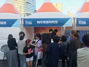 제주도와 도관광협회는 서울시에서 개최하는 제100회 전국체육대회와 연계해 지난 4일부터 오는 10일까지 제주관광 홍보관을 운영하고 있다.제주관광 홍보관에서는 제58회 탐라문화제, 2019 제주올레걷기축제 등과 제주의 가을·겨울철 즐길거리를 홍보하고 제주 캐릭터 열쇠고리 만들기와 골프퍼팅 핀볼게임 등 시민 참여형 체험 이벤트를 진행한다.도와 관광협회는 2019 제주여행 소셜 콘텐츠 공모전 진행 및 메가쇼 2019 시즌2 등 주요 박람회 참가 홍보 등을 지속해 제주 방문을 유도할 예정이다.