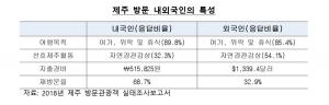 한국은행 제주본부 10일 경제브리프 통해 경쟁력 강화 방안 주문'해외여행 대체'한계…내·외국인 관광객 특성별 마케팅 차별화 강조제주 관광이 '가심비' '호캉스' 등 최근의 여행·관광 트렌드에 취약하다는 분석이 나왔다. 환경 변화 속도와 비교해 편차가 큰 인프라간 균형을 맞추는 것은 물론 내·외국인 관광시장에 차별화한 상품 구성으로 부가가치를 높이는 방안이 주문됐다.한국은행 제주본부(본부장 김종욱)는 10일 '내국인의 제주관광 선택 요인과 제주의 관광경쟁력 강화 방안