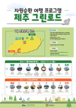 제주특별자치도는 다음달 4일과 5일 이틀간 자원순환을 테마로 한 친환경 시설 체험과 플로깅, 생태관광 등을 접목한 ‘제주 그린로드’ 프로그램을 시범 운영한다고 29일 밝혔다.이번 프로그램은 환경교육과 플로깅, 생태관광을 통해 자원순환의 중요성을 알리고 제주 자연과의 조화를 체험할 수 있는 새로운 친환경 관광상품을 개발하기 위해 마련됐다.총 2개 코스로 진행되는 이번 프로그램은 첫날인 4일에는 제주 동쪽을 탐방하는 ‘제주에코투어’가, 둘째 날인 5일에는 제주 남쪽을 탐방하는 ‘그린순환투어’가 운영된다.프로그램 참가자들은 재활용도움센터