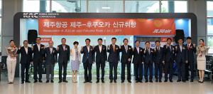 제주항공 2일 직항 노선 신규 취항…주3회 운항도·관광공사 팸투어 등 일본 관광시장 회복 주력 제주와 일본을 잇는 하늘길이 넓어졌다.제주항공(대표이사 이석주)은 2일 제주~일본 후쿠오카 노선에 신규 취항했다.이번 제주항공 취항으로 지난 2014년 10월 닫혔던 제주-후쿠오카 직항노선이 4년 8개월 만에 다시 열렸다. 제주항공은 제주-후쿠오카 노선에 주3회(화·목·토) 운항한다. 화요일은 후쿠오카에서 낮 12시55분 출발해 제주공항에 오후 2시35분 도착하며, 제주국제공항에서 오후 4시35분 출발해 후쿠오카