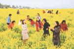 징검다리 연휴를 맞아 제주를 찾은 관광객들이 성산일출봉 일대의 유채꽃밭에서 노란 꽃속에 묻혀 남국의 정취를 만끽하고 있다. 이번 연휴에는 관광객 3만5000여명이 제주를 찾을 것으로 예상돼 관련업계가 반짝호황을 기대하고 있다.