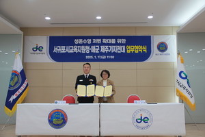 해군 해난구조대(SSU)와 함께하는 제주 서귀포시 초등학생 생존수영이 확대된다.서귀포시교육지원청은 지난 17일 오전 대한민국 해군 제주기지전대와 전문 생존수영 교육 프로그램 저변 확대를 위한 업무협약을 체결했다고 밝혔다.교육지원청에 따르면 지난해 해군 SSU대원들은 도순초·강정초 5~6학년 학생들을 대상으로 착의영 생존수영 훈련을 실시했다.일상복을 입고 수영하는 착의영 교육을 통해 학생들은 실전과 비슷한 상황에서 헤엄치는 법을 배웠다.서귀포시교육지원청은 이번 협약으로 해군 생존수영 대상 학교를 기존 2개교에서 3개교(도순초·강정초·