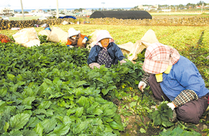 쌀쌀한 날씨를 보인 25일 애월읍 애월리에서는 농부들이 겨울철 입맛을 돋우는 취나물을 수확하느라 분주한 손길을 놀리고 있다.