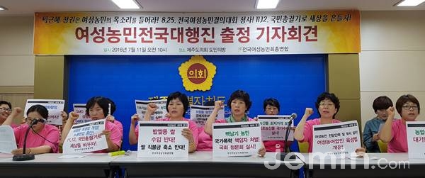 국내 여성 농업인으로 구성된 전국여성농민회총연합(이하 전여농)은 11일 제주도의회 도민의방에서 기자회견을 열고 '여성농민 전국대행진'의 출발을 알렸다.