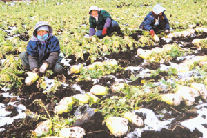 본격적인 김장철을 맞아 도내 중산간지역에서는 고랭지 무수확이 한창이지만 포대당 3000원선에 거래돼 인건비도 건지지 못하자 한 농가에서는 출하 대신 저온저장고에 보관하기 위해 어쩔수 없이 수확에 나서고 있다.
