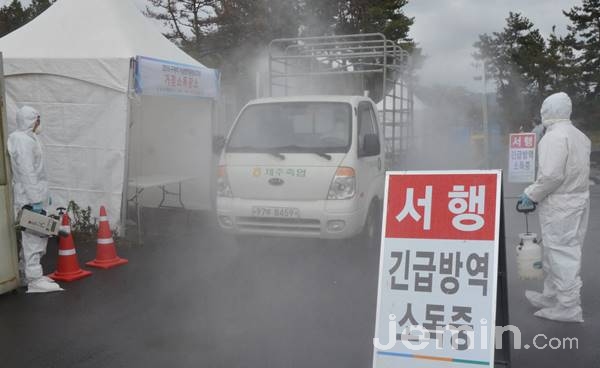 제주시는 30일 한림읍 금악리 제주축협 가축시장에서 농·축협 생산자단체 및 축산 관계자 등이 참여한 가운데 '2016 제주시 구제역·AI 가상방역훈련(CPX)'을 실시했다. 이날 훈련은 구제역과 AI 등 제1종 가축전염병이 발생한 상황을 가정해 의심신고에 따른 국가동물방역통합시스템 신고 접수, 초동방역팀 출동, 통제초소 및 거점 소독, 살처분, 이동통제 등의 과정으로 진행됐다. 고경호 기자