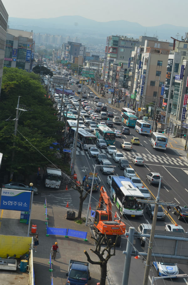 3곳중 광양사거리에서 아라초 구간은 교통량이 상당히 많은 지역인데다 상·하행 차로 각 1개씩을 막아 공사를 진행하면서 교통정체가 극심해지고 있다.