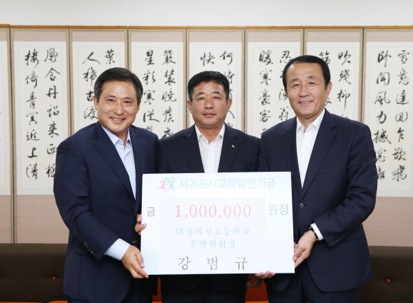 강범규 운영위원장은 “서귀포시교육발전기금을 통해 명품교육도시 육성을 위한 다양한 프로그램들이 운영돼 서귀포시 지역 학생들이 창의적 인재로 자라날 수 있길 바란다”며 기금을 전달했다.