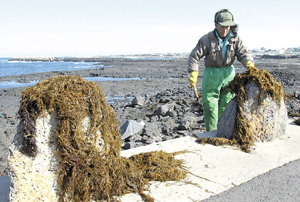 2월 중순이 되면서 제주지방은 완연한 봄날씨가 계속되고 있는 가운데 한경면 신창리 바닷가에서 밭의 퇴비로 이용될 모자반을 채취하는 작업이 한창이다.