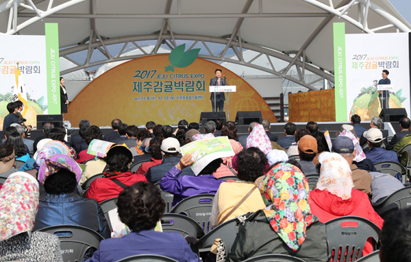 2017 제주감귤박람회가 '안전한 먹거리, 건강한 감귤이 온다'라는 주제로 8일 서귀포농업기술센터 일원에서 개막했다.