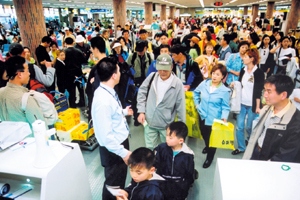 항공사들은 국제선 카운터를 국내선으로 전환해 탑승수속을 진행했으며 대한항공은 출발대합실 곳곳에 안내요원을 배치하고 단체 여행객 데스크를 따로 마련, 승객불편을 최소화하는 노력을 기울였다.