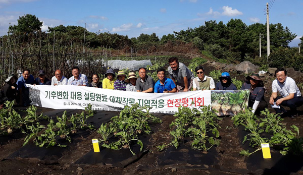 농촌진흥청은 3일 성산읍 시흥리 시범재배지에서 국립원예특작과학원과 국립식량과학원이 공동으로 '설탕원료 대체작목 지역적응성 중간생육 현장평가회'를 실시했다고 밝혔다.