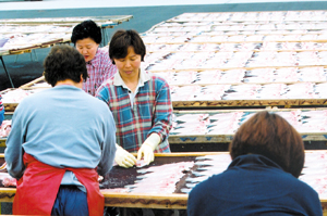 서늘한 봄날씨를 보인 22일, 북군 한림항에서는 아낙네들이 옥돔을 선선한 바닷바람에 말리고 있다.
