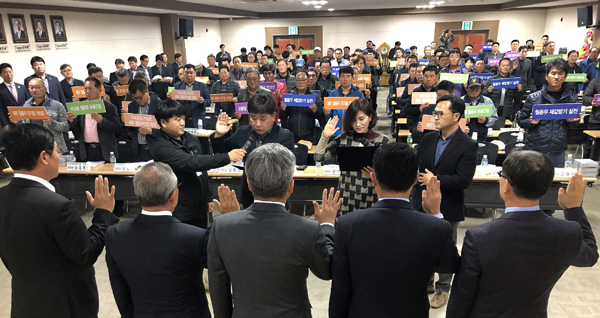 특히 이날 농가들은 결의대회를 열고 월동무 적정가격 유지와 유통난 해소를 위해 행정과 농협에 의존하던 관행을 깨고 자발적으로 나서기로 했다. 우선 농가들은 스스로 비상품을 전량 폐기해 생산량 조절과 유통질서 확립에 앞장선다고 결의했다.
